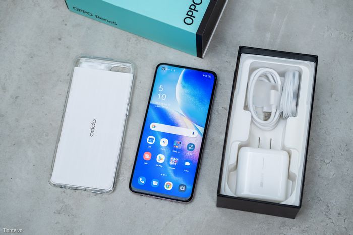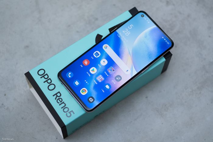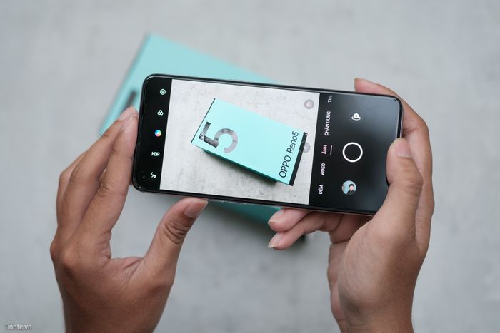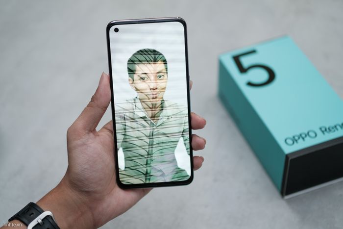 Màn hình của Reno5 được thiết kế dạng khoét lỗ để đặt camera trước. Mặc dù kích thước của camera khá nhỏ nhưng không ảnh hưởng đến trải nghiệm sử dụng của người dùng. Tỷ lệ màn hình so với thân máy của thiết bị là 91,7%.