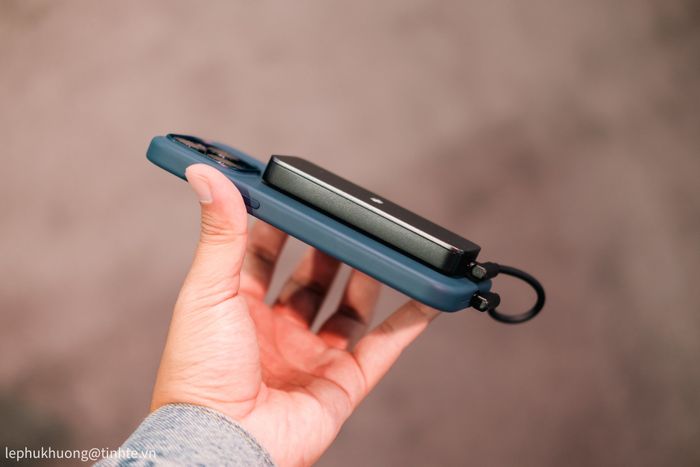 Điểm đặc biệt của hộp này là khả năng sử dụng nam châm MagSafe tích hợp phía sau, giúp việc gắn kết với iPhone trở nên dễ dàng hơn bao giờ hết. Mặc dù vòng MagSafe không hoàn toàn tròn nhưng vẫn đảm bảo lực hút mạnh mẽ, không gây bất kỳ sự lo lắng nào cho người dùng.