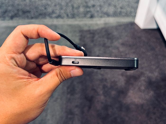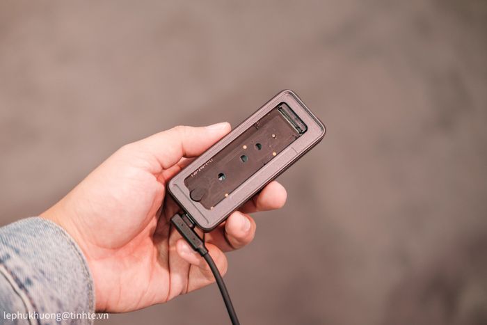 Sau khi gắn vào và lắc nhẹ, hộp vẫn giữ chắc chắn, không một chút lỏng lẻo. Cần lưu ý rằng hộp này hiện đang trống không có ổ cứng SSD bên trong. Tuy nhiên, ngay cả khi có SSD, lực hút của MagSafe vẫn được đánh giá là rất ổn định và hiệu quả.