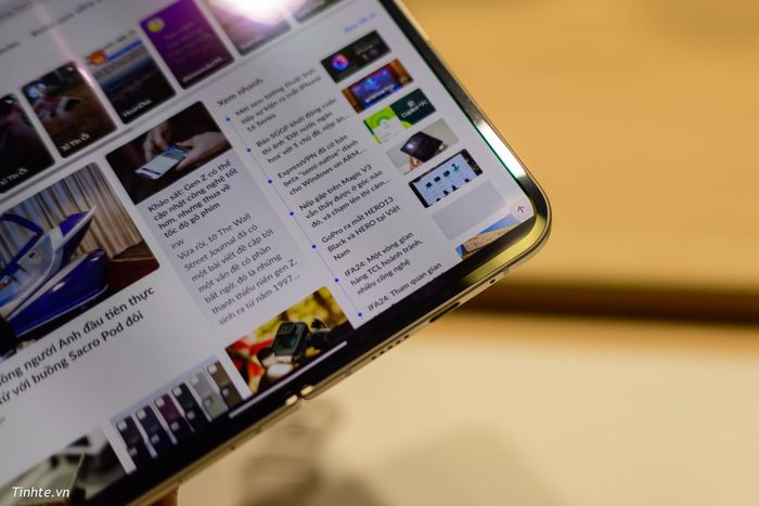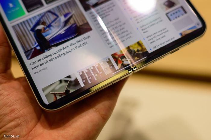 Bức ảnh này cho thấy hiệu ứng gập của bản lề có vẻ nặng nề, nhưng thực tế không phải như vậy. Hiệu ứng ánh sáng tạo cảm giác như thế, còn khi sờ vào thì rất phẳng.