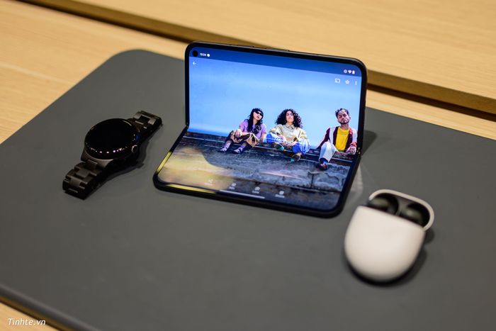 Pixel 9 Pro Fold kết hợp với Pixel Watch 3 và Pixel Buds Pro 2.