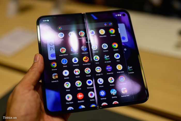Khi gập lại, Google Pixel 9 Pro Fold mỏng như một chiếc điện thoại thông thường. Kích thước và trọng lượng của nó không khác nhiều so với các mẫu điện thoại cao cấp khác của Android hay iPhone lớn. Điều này có nghĩa là chúng ta vẫn có thể mang theo một chiếc máy màn hình lớn trong túi quần, sử dụng ở bất kỳ đâu, khác hẳn với những chiếc tablet cồng kềnh không dễ dàng mang theo.