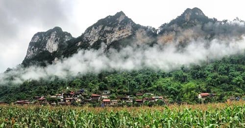 Sau khi ăn sáng, chúng tôi quyết định đi bộ xuống làng để tìm quán bán bánh cuốn phổ biến ở các vùng miền núi như Bắc Kạn, Cao Bằng, Lạng Sơn, Hà Giang… Món này được coi là bữa sáng truyền thống của người dân địa phương, như phở với người Hà Nội.