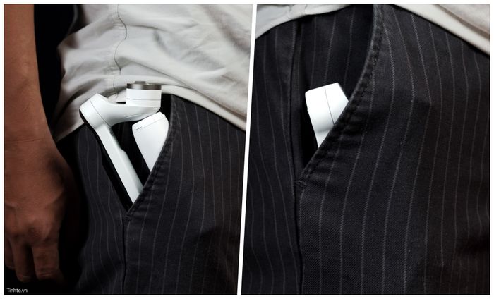Tôi thường xuyên mở kẹp điện thoại, giữ nó trên chiếc iPhone của mình và đặt vào một túi, sau đó chỉ cần nhét gimbal vào túi còn lại là xong.