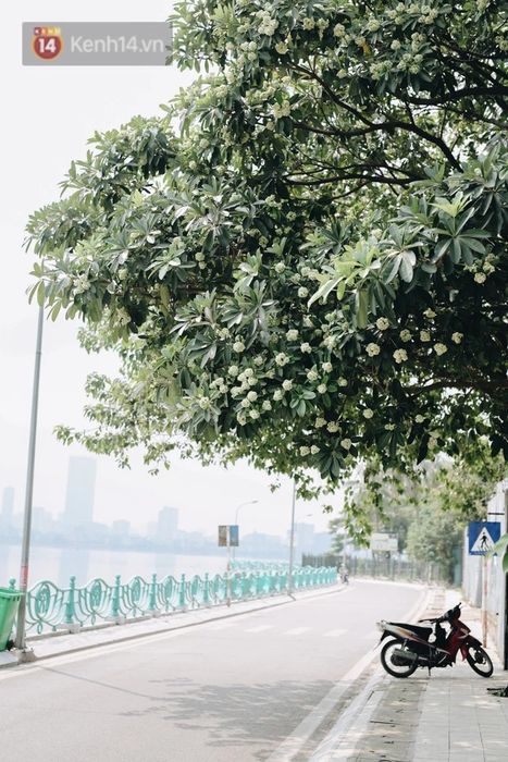 Là một trong những con đường nổi tiếng, Hoàng Quốc Việt là nơi chùm bông trắng tinh khôi và hương thơm quyến rũ trải khắp cả bầu trời, hấp dẫn mọi ánh nhìn qua.