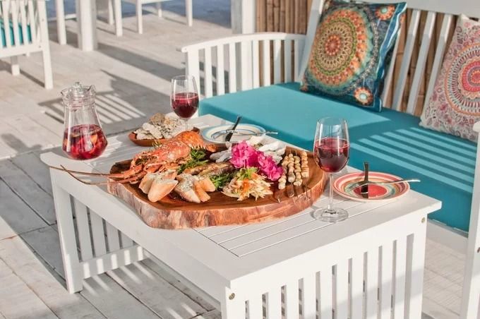 Nhà hàng và quán bar được xây dựng theo phong cách Rustic Bohemian, trôi dạt giữa làn nước biển, nằm tại bán đảo Bình Lập, Khánh Hòa.