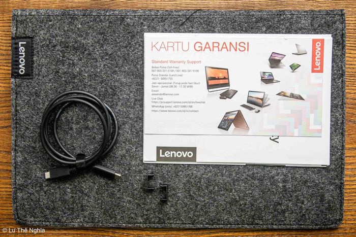 Bộ phụ kiện đầy đủ cho Lenovo L15: Tài liệu hướng dẫn, túi đựng tiện lợi, cáp USB-C và kẹp nhựa chắc chắn