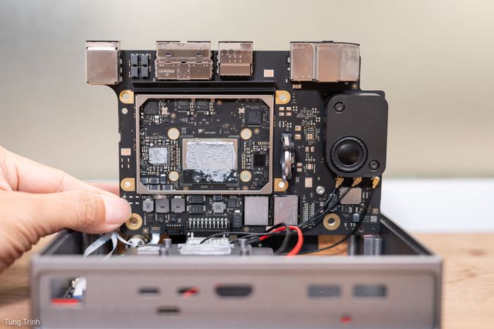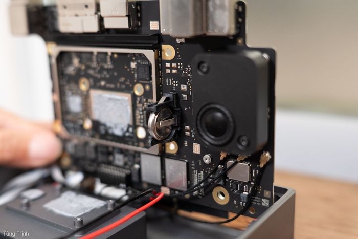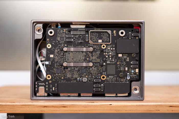 Sau khi mở nắp lưng, bộ main của Mac Mini M1 trở nên rất nhỏ gọn sau khi loại bỏ nguồn chuyển đổi (AC - DC) và hệ thống quạt tản nhiệt.