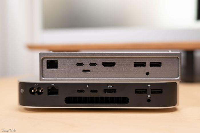 So sánh về cổng kết nối với Mac Mini M1 gốc, tỷ lệ chênh lệch giữa các khu vực tương tự. Sự khác biệt đến từ việc loại bỏ cổng nguồn dạng số 8, thay vào đó là một cổng USB-C mới được bổ sung, cũng chính là điểm cấp nguồn cho máy hoạt động.
