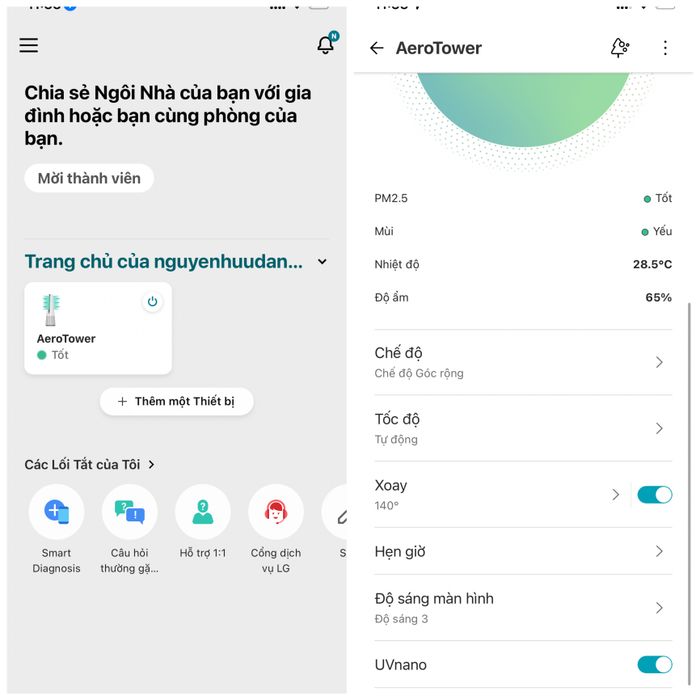 Tôi thích khả năng điều khiển sản phẩm từ xa bằng điện thoại. Bạn cũng có thể làm sạch không khí từ cơ quan trước khi về nhà chỉ với LG ThinQ.