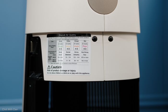 Thiết kế này tạo ra luồng gió mạnh mẽ nhưng vẫn đảm bảo âm thanh yên tĩnh, giúp người dùng cảm thấy thoải mái ngay cả khi đang nghỉ ngơi. Thông tin từ nhà sản xuất: Mức độ tiếng ồn bên trong phòng là khoảng 50dB. Khi máy LG PuriCare AeroTower hoạt động ở chế độ ngủ, nó tạo ra làn gió sạch yên bình với mức độ tiếng ồn chỉ bằng 1 nửa so với âm thanh trong thư viện (23dB). Trong thực tế, khi sử dụng chế độ ngủ, máy hoạt động rất yên tĩnh với mức độ tiếng ồn dao động khoảng 40dB (cần lưu ý rằng khi sử dụng chế độ này, máy được đặt gần các thiết bị khác đang hoạt động như: 3-4 đèn studio công suất lớn, máy lạnh, và các âm thanh từ môi trường làm việc,...). Vì vậy, với tôi, mức độ tiếng ồn 40dB là một con số khá tốt để tham khảo, và điều đáng chú ý là ngay cả khi máy hoạt động trong quá trình ghi hình, mic thu tiếng rất nhạy, nhưng LG PuriCare AeroTower vẫn hoạt động êm ái đến mức mà bạn sẽ không cảm nhận được sự hiện diện của nó.Bề ngoài ấn tượng
