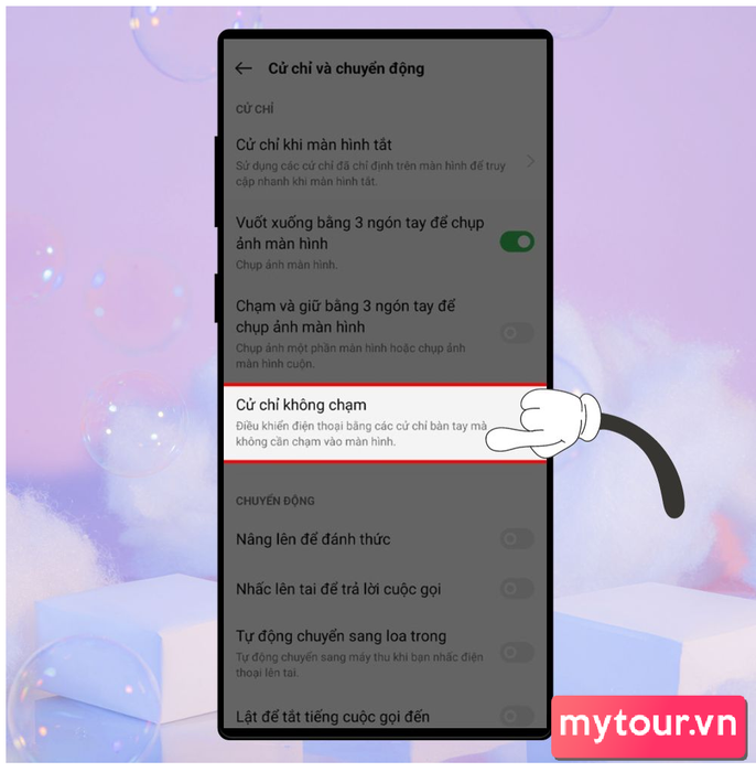 Bước 3: Trong phần Cử chỉ và chuyển động, hãy lựa chọn Cử chỉ không cần chạm.