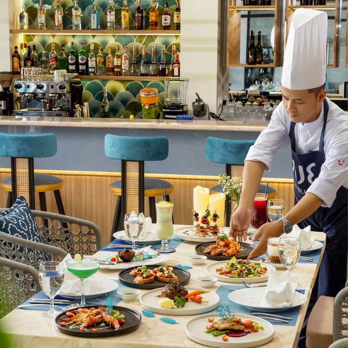 Khám phá thế giới ẩm thực đa dạng với những hương vị đặc sắc tại TUI BLUE Nha Trang. Thưởng thức những bữa ăn tuyệt vời tại 2 nhà hàng đẳng cấp. Từ nhà hàng The Restaurant ở tầng thượng với các món buffet hấp dẫn, đến nhà hàng “Xanh Ciao” với sự kết hợp độc đáo giữa ẩm thực châu Á và phong cách ẩm thực Ý truyền thống.