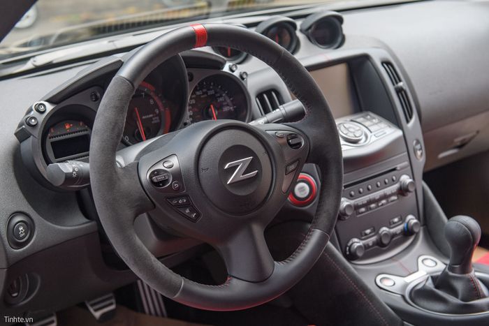 Vô lăng 3 chấu vẫn giữ nguyên từ phiên bản đầu tiên ra mắt năm 2009. Sự thay đổi ở phiên bản Nismo là việc bọc da Alcantara và có một dải đỏ ở giữa tạo điểm nhấn.