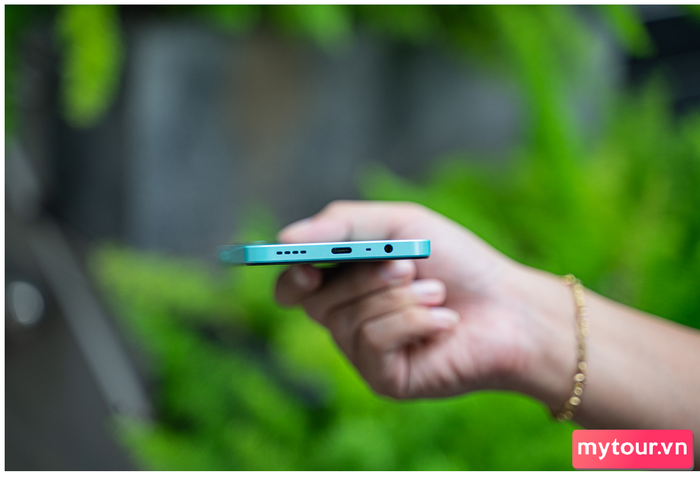 Phía dưới là nơi chứa loa ngoài, cổng sạc, mic và cổng âm thanh 3.5 mm. Việc trang bị cổng âm thanh 3.5 mm là sáng tạo với một sản phẩm giá rẻ như realme C51, giúp người dùng tiết kiệm chi phí và dễ dàng kết nối.