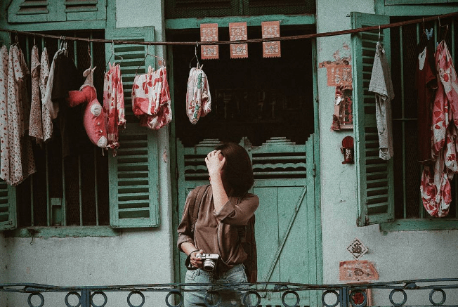 Lang thang trong hẻm, ánh mắt bắt gặp hàng dây phơi quần áo trước mỗi nhà, tạo nên bức tranh lộn xộn độc đáo. Mặc dù có vẻ hỗn độn, không gian bên trong lại tách biệt khỏi khói bụi bên ngoài, mang lại không khí yên bình. Sự hòa quyện với lối sống Trung Hoa tạo nên cảm giác như đang tham gia vào một bộ phim TVB. Những cô gái trong chiếc áo dài bán bánh bèo và chụp ảnh cho mùa Tết làm nổi bật không khí truyền thống.