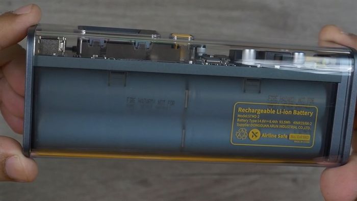 Shargeek Storm 2 Liquid không chỉ làm pin sạc mà còn là phụ kiện trang trí độc đáo với vỏ nhựa trong suốt, cho phép nhìn thấy toàn bộ bên trong. Nguồn: Han's Tech Talk.Tuy nhiên, với tổng thể từ nhựa trong suốt, Shargeek Storm 2 Liquid có thể dễ bị xước hoặc bám bẩn. Do đó, quan trọng để bảo quản thiết bị luôn sạch sẽ và tránh va chạm với các vật sắc nhọn.