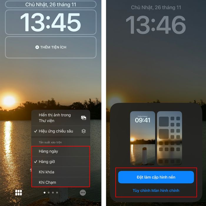 Bước 3: Cuối cùng, nhấn vào biểu tượng 3 chấm ở góc dưới cùng bên phải để điều chỉnh tần suất thay đổi ảnh tự động. Nhấn Thêm để đặt làm ảnh khóa và tận hưởng màn hình khóa hoàn hảo.
