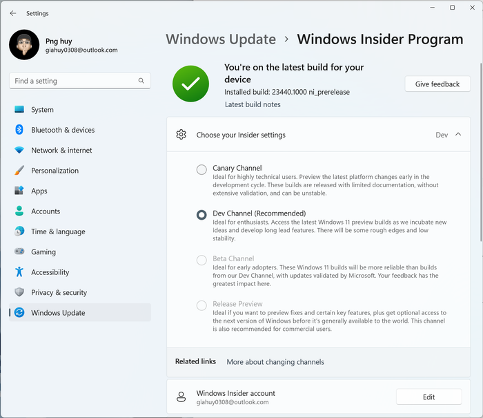 - Chọn Chương trình Insider của Windows và tuân theo hướng dẫn.