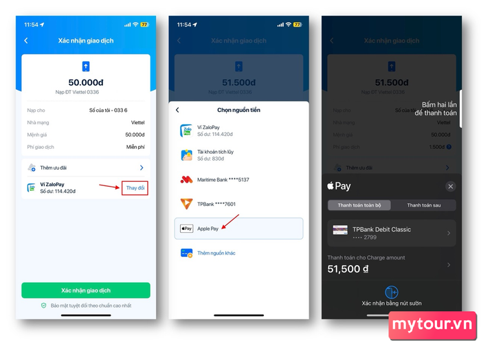 Để thanh toán bằng Apple Pay trên ví ZaloPay, bạn có thể thực hiện như sau:
