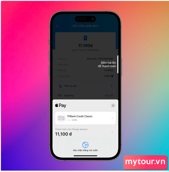 'Xác nhận giao dịch'Thực hiện xác thực sinh trắc giao dịch bằng FaceID hoặc TouchID để hoàn tất thanh toán.