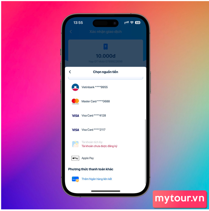 Xác nhận giao dịch', bạn chọn chuyển đổi sang phương thức thanh toán bằng