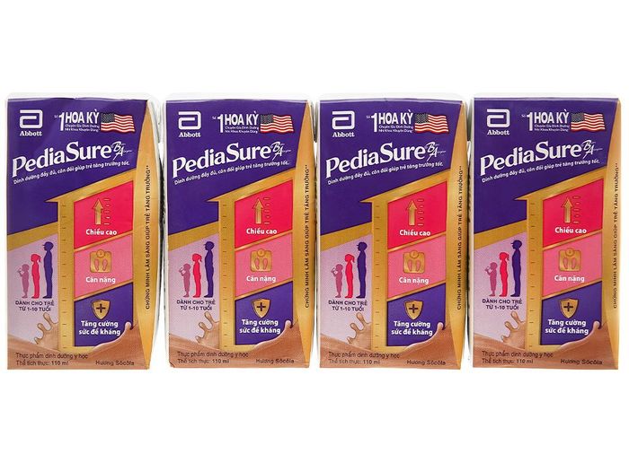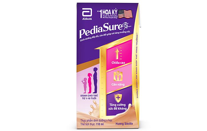 Sữa Pediasure hộp giấy pha sẵn 110ml vị sô-cô-la là sản phẩm dinh dưỡng dành cho trẻ từ 1 đến 10 tuổi. Đây là lựa chọn phổ biến để bổ sung dinh dưỡng cho trẻ có nhu cầu cao hoặc gặp khó khăn trong việc ăn uống đầy đủ chất cần thiết.