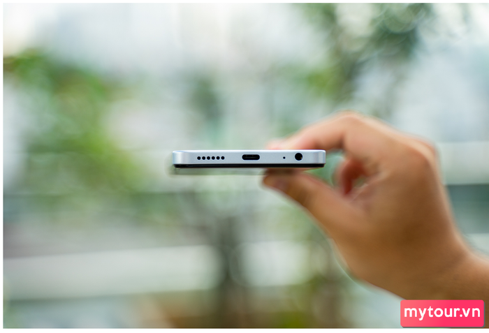 Phía dưới là nơi đặt loa ngoài, micro thoại, cổng sạc USB - C, và cổng tai nghe 3.5mm - rất thuận lợi cho những người ưa thích tai nghe có dây hoặc loa âm thanh truyền thống.