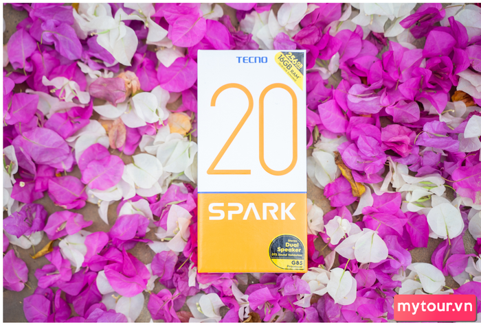 Hãy cùng nhau khám phá nhanh Tecno Spark 20. Thiết bị được đóng gói một cách quen thuộc với sự kết hợp màu trắng và cam, tạo nên vẻ đẹp rất ấn tượng.