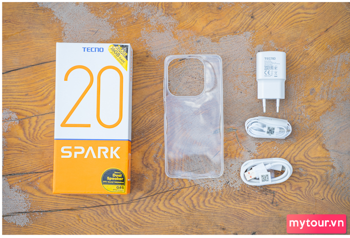 Điểm mà tôi ưa thích ở các sản phẩm giá rẻ chính là việc bên trong hộp thường đi kèm với nhiều phụ kiện. Cùng với Tecno Spark, bạn sẽ nhận được ốp lưng trong suốt, củ sạc/cáp và tai nghe 3.5mm. Tổng thể khá là đầy đủ và tiện lợi.