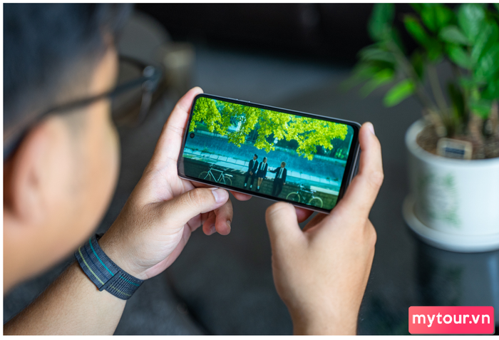 Khả năng hiển thị của máy không có điểm nổi bật, độ phân giải HD+ (720 x 1.612), màn hình IPS LCD, màu sắc có chút ám xanh, phù hợp cho việc xem nội dung trên Tiktok, Youtube,... Tần số quét 90Hz làm tăng trải nghiệm vuốt chạm.