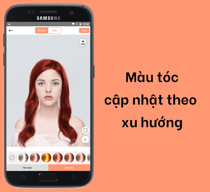 Bên cạnh việc chọn kiểu tóc, ứng dụng cho phép bạn tùy chỉnh màu sắc tóc với nhiều tùy chọn màu sắc độc đáo theo xu hướng hiện nay.
