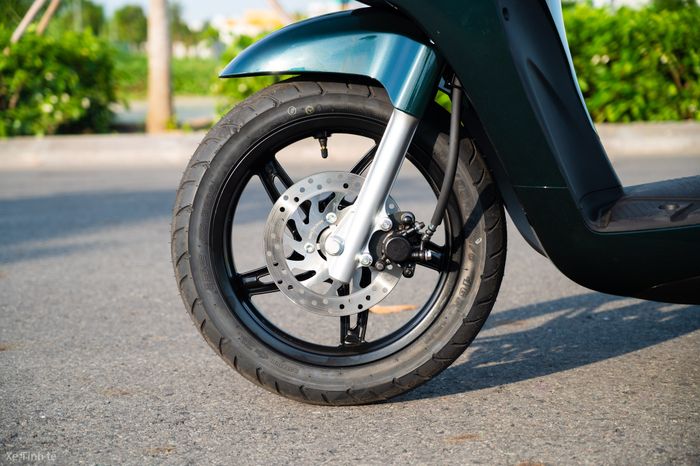 Hệ thống tre trước của xe sử dụng loại ống lồng thông thường, phanh trước là đĩa đơn và không có hệ thống ABS như các dòng xe cao cấp khác của VinFast. Mâm trước và sau đều có kích thước 14 inch và được sơn đen. Lốp trước có kích thước 90/90, lốp sau lớn hơn với kích thước 120/70. Yên xe có chiều cao 770mm và khoảng sáng gầm 145mm, với khả năng chống nước IP67.