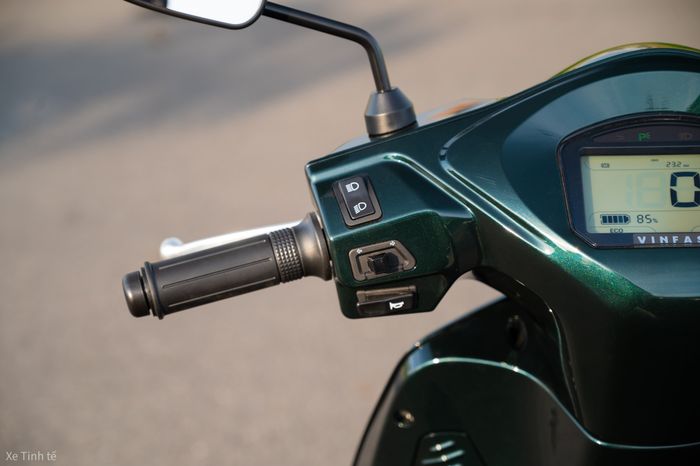 Cụm công tắt trái/phải của xe giống như các mẫu xe máy thông thường khác, không có gì đặc biệt ngoại trừ việc có nút điều chỉnh giữa 2 chế độ lái là ECO và SPORT. Chế độ ECO giới hạn tốc độ dưới 30 km/h để tối ưu hóa phạm vi hoạt động của pin lên đến 200 km.