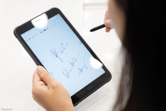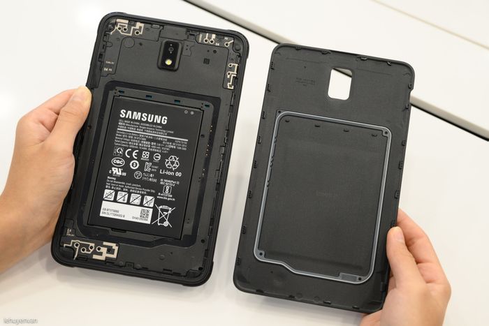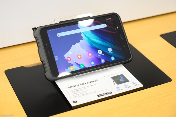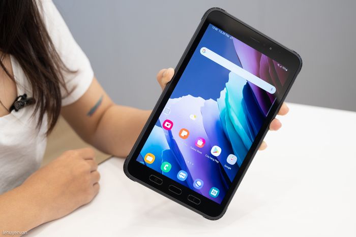 Galaxy Tab Active3 mang lại diện mạo vững chãi, chắc chắn với bề mặt bảo vệ chịu lực. Thiết bị đạt chuẩn MIL-STD-810H, khả năng chống va đập ở độ cao 1,5m và chống nước ở cấp độ IP68.