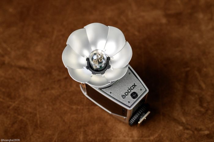 Phần phía sau của đèn vẫn giữ nguyên nhưng với diện tích nhỏ hơn, tạo cảm giác gọn gàng hơn rất nhiều. Đặc biệt, phần choá đèn được Godox làm nhỏ gọn hơn, khiến cho khi mở hết, chiếc Lux Cadet không to lớn như Lux Senior.