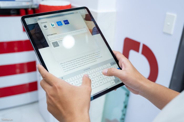 Apple đã tối ưu hóa hiển thị phần bàn phím ảo trên iPad Pro mới và iPad nói chung vô cùng tinh tế. Khi máy được xoay dọc, việc sử dụng bàn phím vẫn dễ dàng, không gây khó khăn. Khi máy được xoay ngang, các nút bàn phím sẽ được phóng to một chút, thuận tiện hơn cho người dùng.