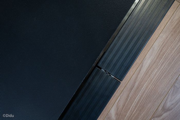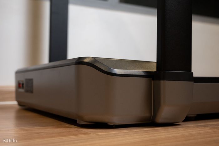 Mảnh ghép tổng thể của MX16 vô cùng độc đáo với thiết kế hình vuông và những đường vát thẳng tinh tế. Điều này không chỉ làm cho máy trở nên mạnh mẽ hơn mà còn tạo ấn tượng mạnh mẽ. Có nhiều người hỏi liệu phần tay có thể gập xuống khi đứng làm việc hay không, nhưng tiếc rằng, đây là một thiết kế cố định. Khi thử nghiệm bằng cách áp đặt lực mạnh lên thanh tay, bạn sẽ cảm nhận được sự cứng cáp vì đây là chi tiết không chuyển động. Ngay cả bản lề để gập thảm chạy cũng được thiết kế cẩn thận để đảm bảo không rung lắc trong quá trình chạy bộ.