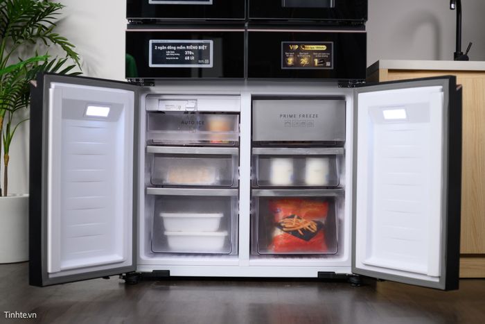Ngăn Prime Freeze độc lập cung cấp 3 chế độ hoạt động: cấp đông siêu tốc, làm lạnh nhanh và làm nguội nhanh cho thực phẩm.