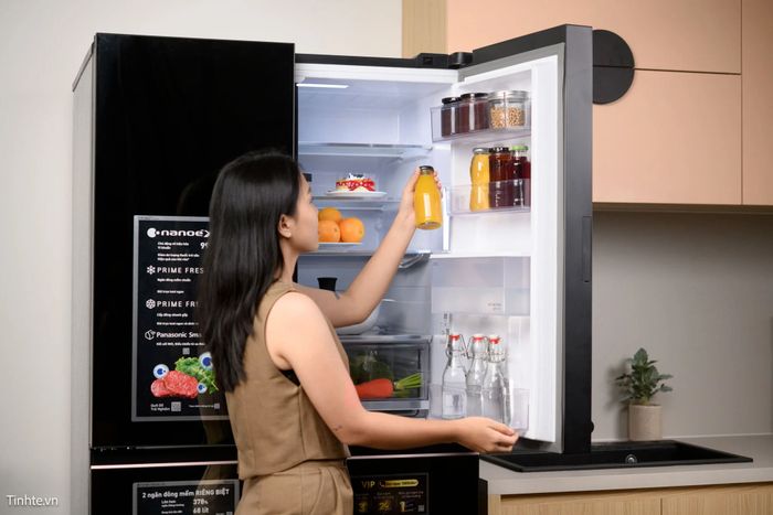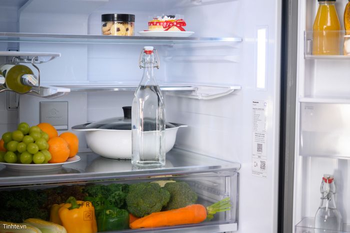 Khay kính trong suốt giúp dễ dàng quan sát tình trạng của thực phẩm.Tủ lạnh Panasonic Prime+ 2023 tích hợp toàn bộ công nghệ cao cấp nhất từ Panasonic