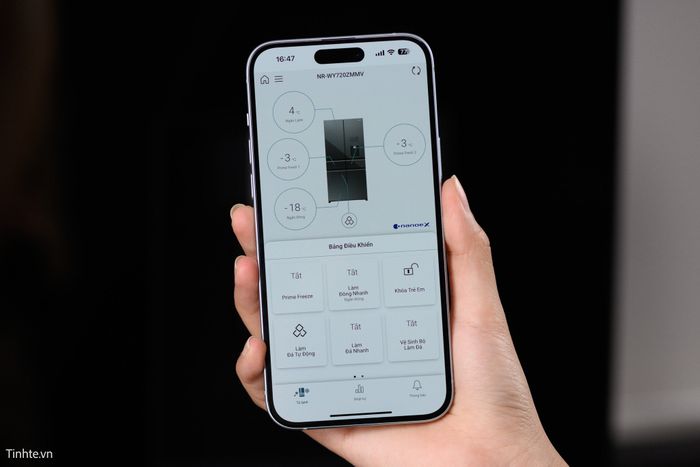 Khi kết nối tủ lạnh Prime+ Edition 2023 với ứng dụng Panasonic SmartApp+ trên điện thoại, người dùng có thể theo dõi và điều chỉnh nhiệt độ, chế độ của tủ từ xa.