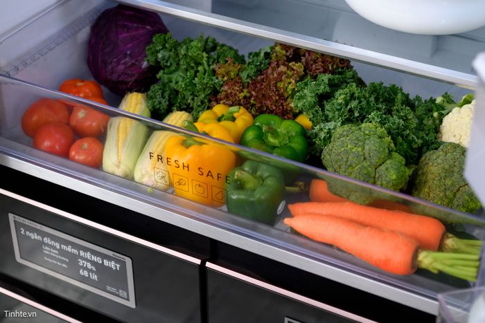 Phía sau khoang chứa được trang bị hệ thống hút ẩm, giữ cho rau củ duy trì độ ẩm lý tưởng, giữ tươi lâu.