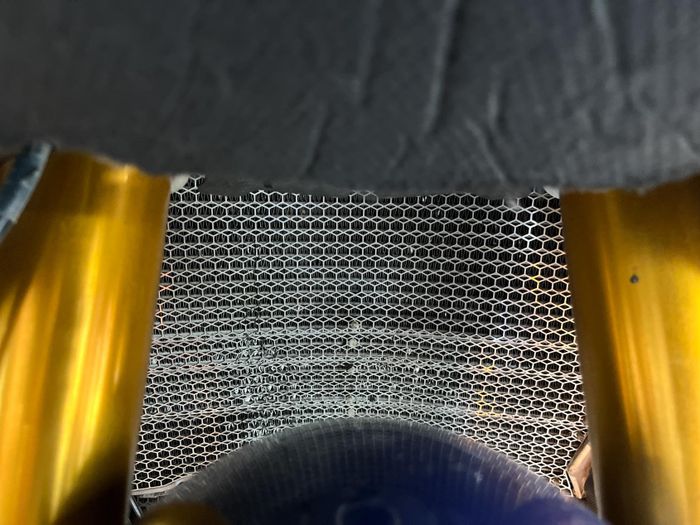 Két nước giải nhiệt có diện tích rộng lớn, đảm bảo cho việc làm mát cho các động cơ MotoGP một cách hiệu quả nhất. Lớp lưới bảo vệ được thiết kế tỉ mỉ, không chỉ bảo vệ két nước mà còn giúp duy trì luồng không khí trong lành.Khám phá và ngắm nhìn từng chi tiết trên một chiếc xe MotoGP mang lại cảm giác khác biệt hoàn toàn so với những chiếc xe thương mại. Chiếc xe MotoGP như một phần của một thế giới khác biệt, gần gũi nhưng đồng thời lại xa lạ. Gần gũi bởi vì nó vẫn chỉ là một chiếc xe mô tô, nhưng xa lạ vì mọi thứ trên nó đều là điều mơ ước với những người đam mê xe mô tô, không chỉ là từng chi tiết mà cả tổng thể của chiếc xe.