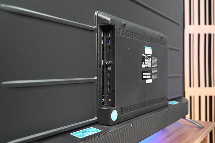 TV này được trang bị nhiều cổng kết nối cơ bản như 4 cổng HDMI input (bao gồm cổng số 1 hỗ trợ HDMI eARC), 1 ngõ ra Optical/Coaxial, 1 ngõ vào LAN, và 2 cổng USB.