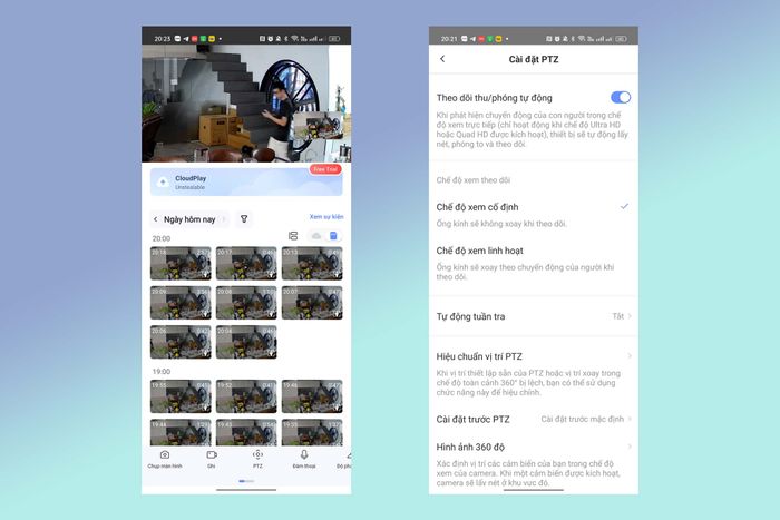Quay trở lại giao diện camera, EZVIZ tập trung vào việc hiển thị nhiều màn hình quan sát ngay khi người dùng mở ứng dụng. Bên cạnh đó, phần thư viện sẽ thông báo những điều mà bạn muốn nhận thông báo. Phần kết nối thông minh sẽ tạo ra các tự động hóa nếu bạn sử dụng các thiết bị IoT của EZVIZ như khóa cửa, hệ thống cảm biến.