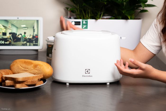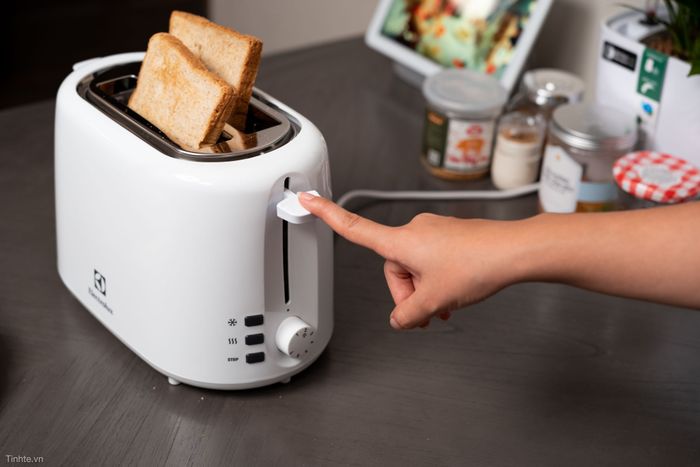 Ở bên trái còn có một thanh gạt khác, khi nhấn xuống, vỉ nướng bánh mì sẽ được bật lên. Gần đó có biểu tượng giúp bạn dễ hình dung.