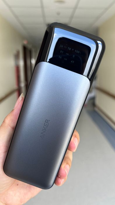 - Màn hình hiển thị đa năng (điều này làm cho tôi ấn tượng nhất khi xem video giới thiệu của hãng): hiển thị nhiệt độ, trạng thái pin, công suất sạc vào/ra; số lần hiển thị, số chu kỳ sạc giúp người dùng có nhiều thông tin và dễ dàng theo dõi quá trình sạc cho thiết bị của mình. Điều này làm cho màn hình này không kém phần ấn tượng so với các sản phẩm trạm sạc điện trị giá khoảng 10 triệu trên thị trường, mặc dù đây chỉ là model pin dự phòng đầu tiên của Anker có màn hình hiển thị như vậy.