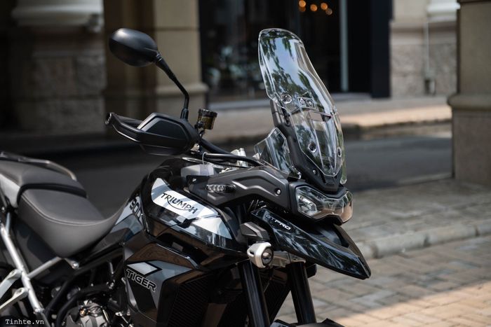 Ngoài đèn phía trước, một điểm nổi bật khác của Triumph Tiger 900 là phần mỏ vịt được kéo dài về phía trước, một thiết kế phổ biến trên các dòng xe Adventure. Điều này cùng với tấm kính chắn gió lớn giúp giảm mệt mỏi trong những hành trình dài.