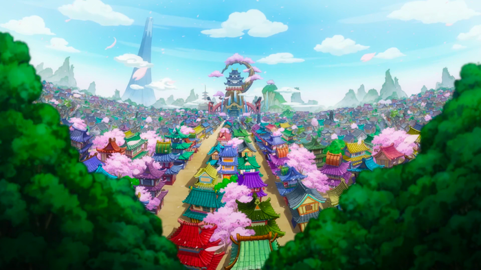 Cảnh ưa thích nhất của Oda trong One Piece là cảnh khai mạc của arc Wano, hé lộ thủ đô Hoa của Wano với người hâm mộ và phản ánh vẻ đẹp của hòn đảo đã bị Kaido và Kurozumi Orochi phá hủy.
