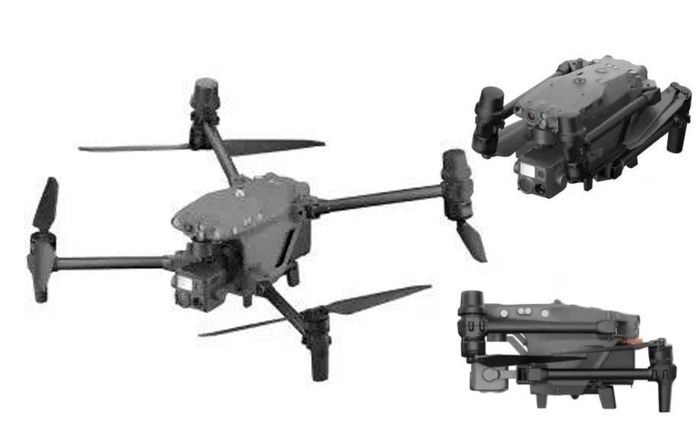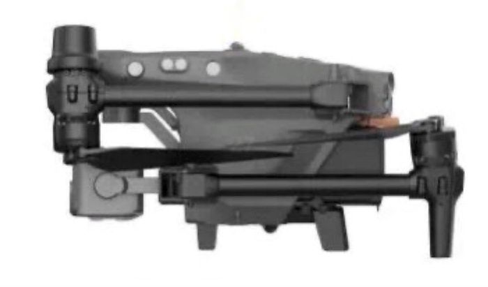 Khi gập lại, M300 có hình dáng khá lạ và cồng kềnh, với nhiều góc cạnh xa thân máy, không gọn như các dòng Mavic.Hình ảnh nằm ngang của máy khi gập cũng tiết lộ tới 4 cảm biến, quá nhiều. Không biết dưới bụng còn bao nhiêu cái nữa.